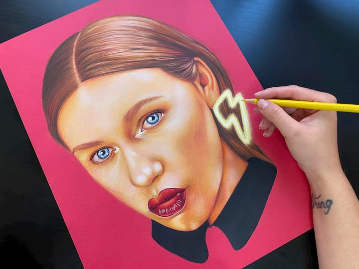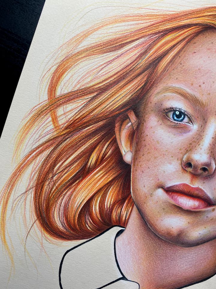 Cómo puedes ver, sus retratos se caracterizan por dos materiales específicos: Los lápices de grafito / color, el carboncillo y el pastel. A pesar de esto, la artista no descarta y puede que muy pronto, volver a sus inicios.