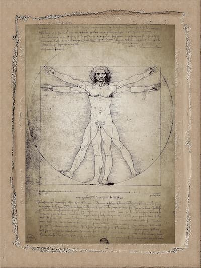 Un estudio anatómico que combina arte y ciencia, mostrando las proporciones ideales del cuerpo humano. Es uno de los símbolos más reconocidos del pensamiento renacentista.