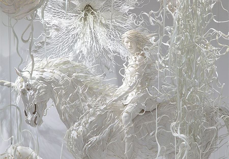 Imaginad un paraje de niebla por donde campan seres sin vida, como si se tratara de un cementerio embrujado. Pues esta es la atmósfera que recrea el trabajo de Odani Motohiko, un escultor que reflexiona sobre la muerte, el misticismo, los recuerdos y el terror. Con sus instalaciones y esculturas recrea mundos de ultratumba repletos de belleza.