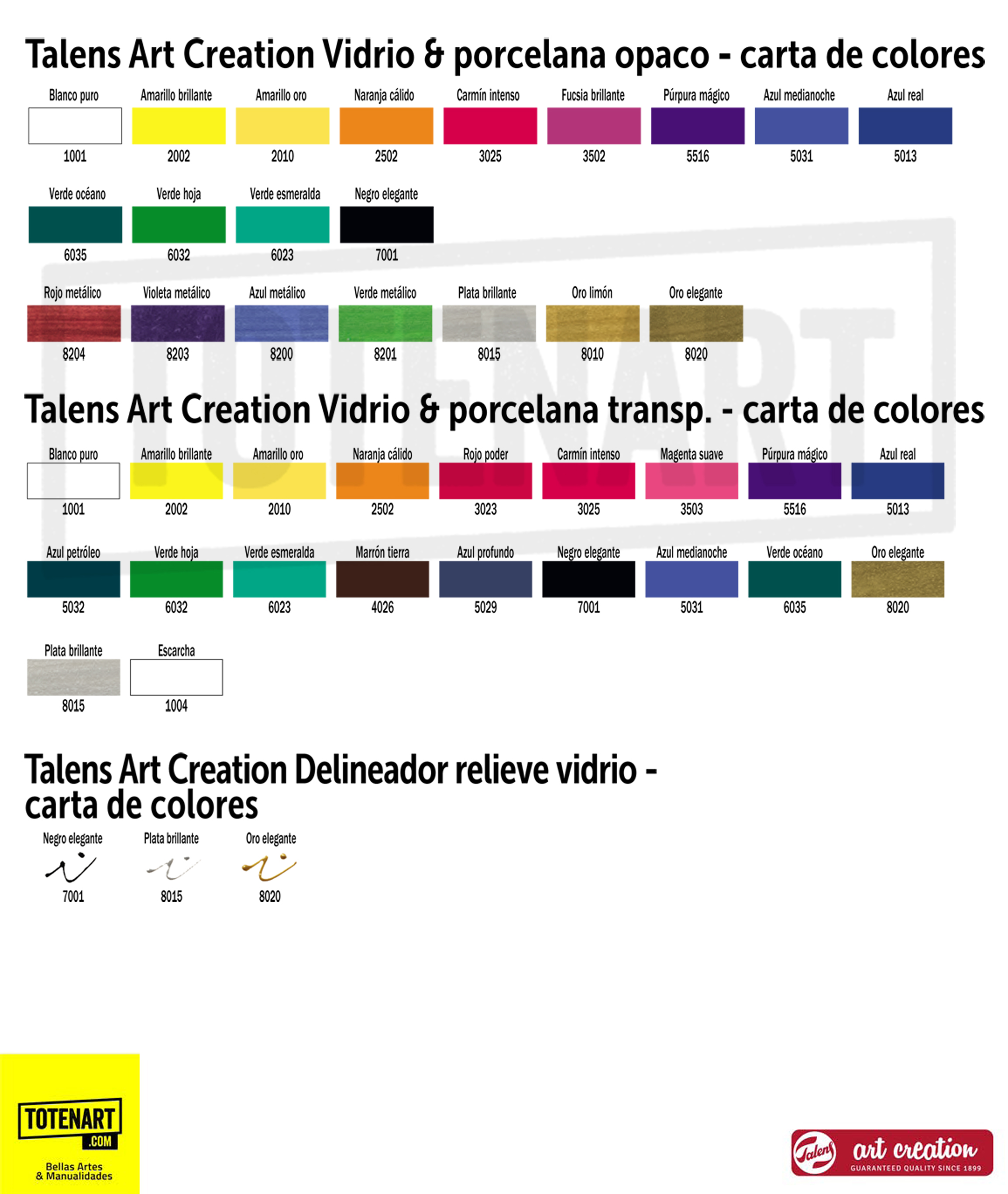 Pinturas para cristal y porcelana Talens Art Creation: Disponibles en colores opacos y transparentes así como para hacer líneas con relieve.