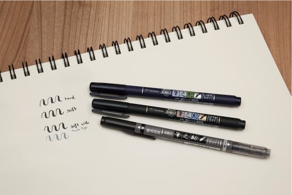 Por otra parte, Fudenosuke de Tombow incluye una línea de rotuladores de punta blanda. Esta está pensada para realizar trazos más artísticos. Gracias a su flexibilidad, podrás realizar todo tipo de líneas de una forma sencilla. La línea Tombow Fudenosuke Soft solo está disponible en color negro y en una versión muy especial, el Fudenosuke Twin Tip: