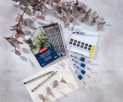En esta sección encontrarás toda la gama Graphitint: Lápices Graphitint de grafito acuarelable y set derwent graphitint paint pan set.